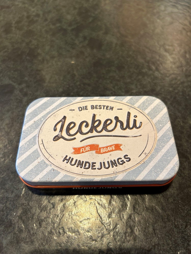 Leckerli Dose:6x9,5x2 für Snacks unterwegs , Scharnierdeckel