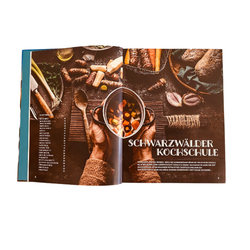 We therefore only use what every amateur chef also has in his kitchen or can easily buy. In addition, there is an extensive cooking school with the most important basics and basic recipes of the Black Forest cuisine: from Spätzle to Brägele, from Flammkuchen to Bubespitzle.
