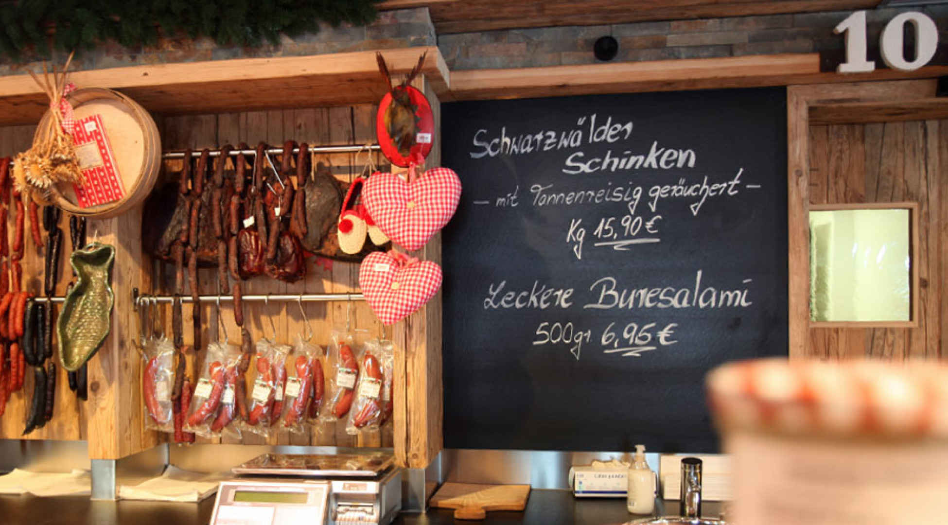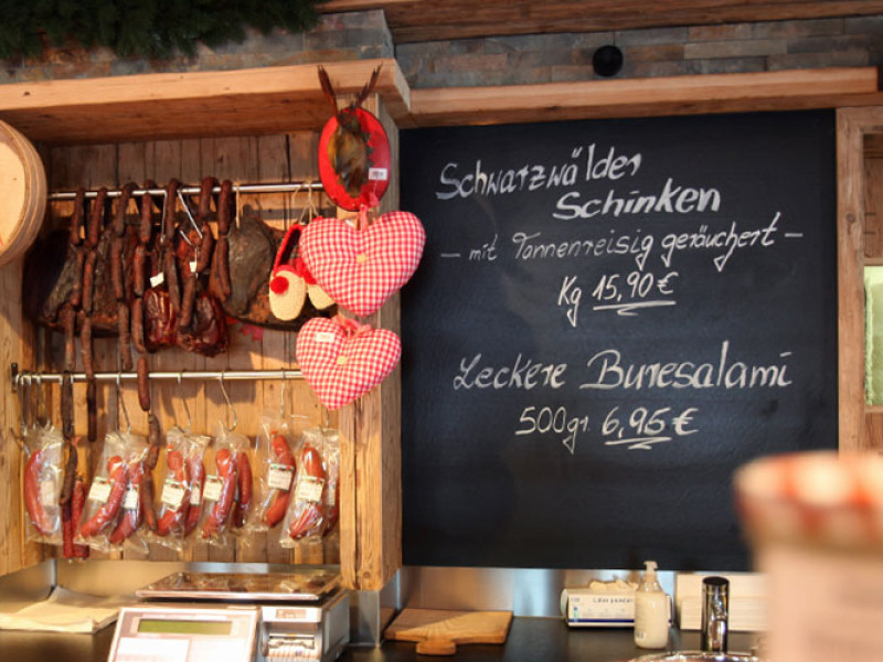 Les souvenirs de notre magasin Black Forest ont de nombreux visages : du pain parfumé, fraîchement cuit au feu de bois, du jambon Black Forest bien cuit et fortement fumé, du kirsch Black Forest, des vins de baies et de délicieuses saucisses.