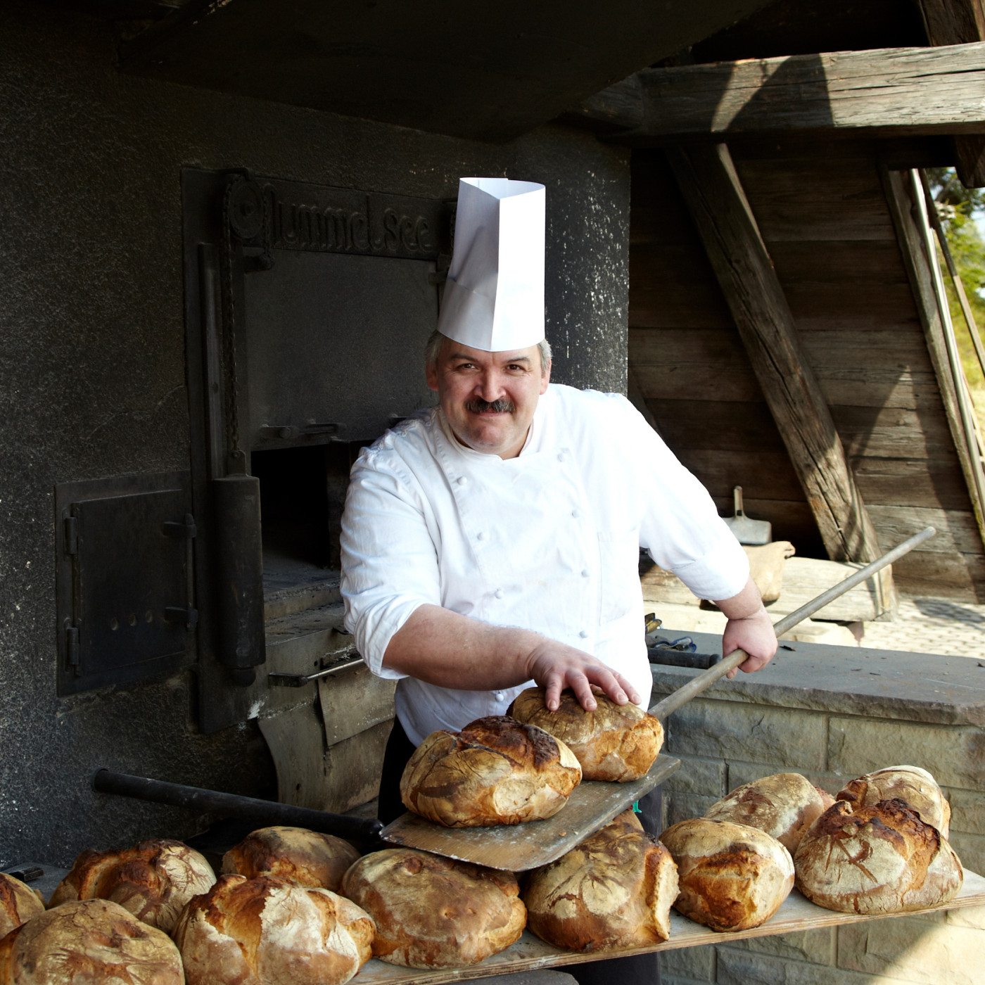 Vous pouvez couper en toute confiance une tranche du fabuleux pain qui sort chaque jour de notre four à bois. Et bien sûr, à emporter chez soi.