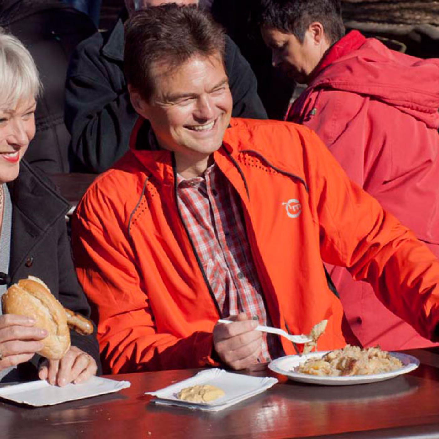 Des boissons pour tous les goûts, de la bière fraîchement coupée, de délicieux rouleaux de jambon, du pain de ferme avec une délicieuse pâte à tartiner, jetez un coup d'œil autour de vous, ici les yeux brillent et l'estomac est heureux.